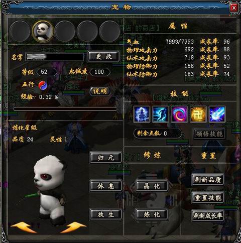 活动五:宠物总动员“神秘仙人”将会以公告的形式发布当前需要抓捕的宠物,以及宠物必须携带的技能;当玩家抓捕到指定宠物后,需要点击宠物面板的领悟技能。如果你的宠物领悟到了“神秘仙人”所指定的宠物技能,那么恭喜你,“神秘仙人”将会回收你的宠物;然后找到“神秘仙人”并主动与其交易,当然这并不是无偿的交易哦,“神秘仙人”将会提供给你4钟选择,你可以任意选择其中一项作为回报;活动期间,“神秘仙人”会不定时地变更所需要抓捕的宠物以及需要携带的宠物技能,所以请玩家一定要带足葫芦哦,不要因为回去购买抓捕工具而浪费时间;活动期间,只要玩家能够抓到要求的宠物,就可以无限次数的与“神秘仙人”交易。