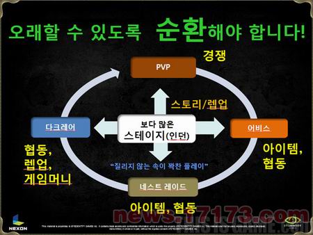 即使游戏提供很多内容,若不循环也没用。为此,《龙之谷》开发商以更多的地图为中心采取PVP和其他内容循环的形态。《龙之谷》的公测版本将强化新手教程,细分任务,强化界面的直观性,添加跟随技能。