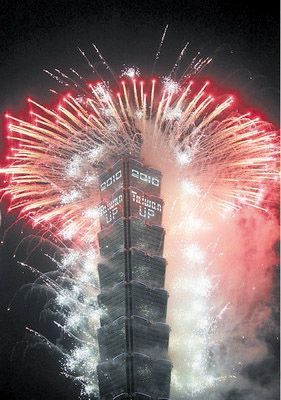 2009年12月31日晚,台北101大楼施放烟花,迎接2010年,此次烟花的施放数量创历年新高。