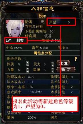 1、每名参赛者可选择任意职业角色(角色等级必需为1级,声望0)参加活动;