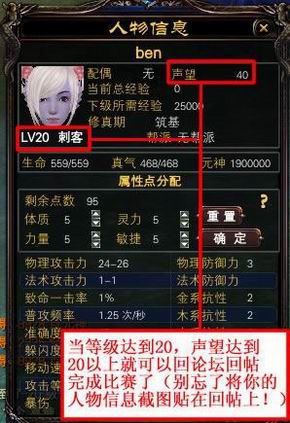 2、参赛者必须以最快的速度到达指定要求(角色等级20,声望20并注册成为完美经纪人),然后以回帖的形式参加活动;