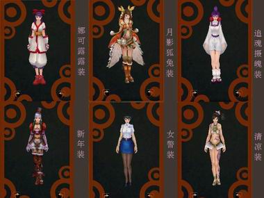 其余12套牌分别为“沉鱼落雁装”、“婚礼装”、“护士装”、“忍者装”、“小乔装”、“天使装”、“娜可露露装”、“追魂摄魄装”、“月影狐兔装”、“情侣装”、“侠女装”和“雪舞装”。