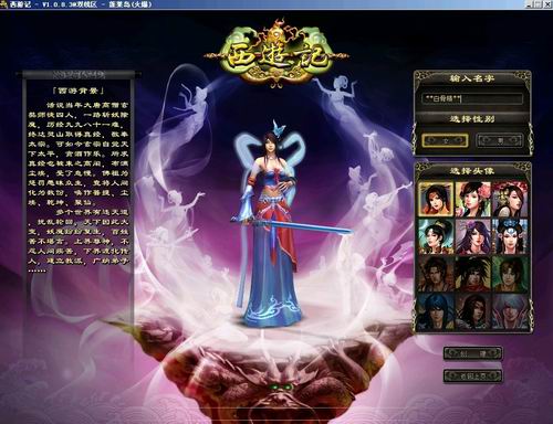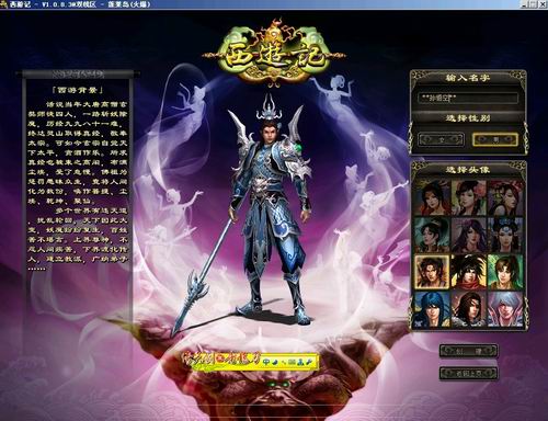 《西游记》在初始创建人物时,是没有职业区分的,职业是在游戏中的六大门派中选择的。我们所创建的人物,会站在一块底部有龙盘绕的平台上展示出来,而周围若隐若现飞舞仙女的背景,不禁让我期待快点进入游戏而心生萌动。