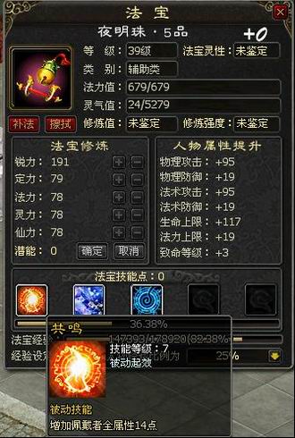 游戏中的法宝分为攻击类、辅助类、防御类、控制类四大类别,每种类型都包含不同的专属技能。区别于一般的装备和道具,法宝可以在玩家战斗中获得经验并升级,就像游戏中的宠物一样,也可以通过升级、补法、擦拭等各种方式,对法宝进行自由的个性化打造。