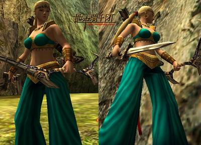 阿拉丁套装是目前《DNK》最受欢迎的套装之一。古典而神秘的套装在【弓箭手】的身上更显性感诱人。明亮的颜色随着弓箭手进攻、防守化成了一只绿色的蝴蝶翩然与战场之上,见者令人心旷神怡。