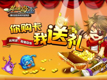 除了全新的游戏内容,精彩的游戏活动,《英雄岛》还准备了更多好礼回馈给广大玩家,“你充值,我买单”、“你购卡,我买单”,现在登陆《英雄岛》贺岁版“你购卡,我送礼”主题活动,即可报名参与活动,活动期间,海量Q币每日赠送,抢!抢!抢!