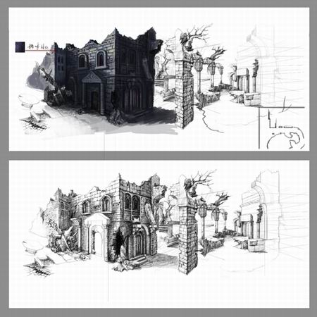 图纸中的画面,清晰的再现了圣域完成的过程,从一座城池的门头到一处峰角都细致入微,之所以有如此精湛的设计,才能够让我们在今天领略到更浓烈的魔幻的味道!