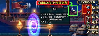 在以前的版本中,如果不小心虚弱了,需要跑到“徐子将”或者家中的“点点”处进行恢复。但是在新春版中,只要您左键点击右上角的“虚弱”图标,就可以进行虚弱恢复了哦!怎么样,很方便吧!