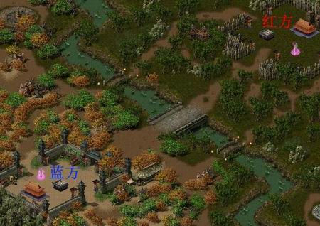 2、对抗原理:红方、蓝方,以及建筑的设计,采取自RTS游戏的设计原理,RTS最著名的游戏是《星际争霸》和《红色警戒》。