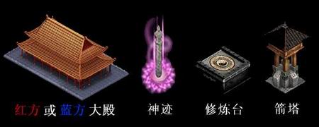 对抗规则:蓝方或红方,每击败一个对方的人,本方将增加1点积分;每打掉一个对方箭塔,给本方增加100积分;打掉对方一个修炼台,可以给本方增加200积分;打掉对方一个神迹建筑,可以给本方增加500积分。