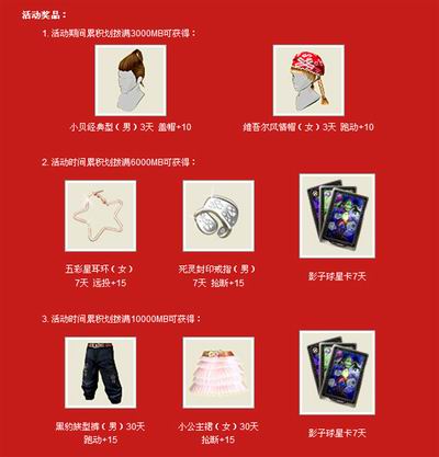 活动期间,玩家进入http://pay.9you.com/funpay/index.php,登陆、充值、并划拨相应金额至《劲爆篮球》即可轻松获取活动礼品。划拨数额在3000MB、6000MB和10000MB可获得不同的新春礼品。时尚发型,潮人饰品配合流行服装让玩家们在新的一年穿新衣!这些道具超强的能力加成绝对是玩家们不容错过的运动装备!影子球星卡更是玩家们驰骋球场的必备道具!