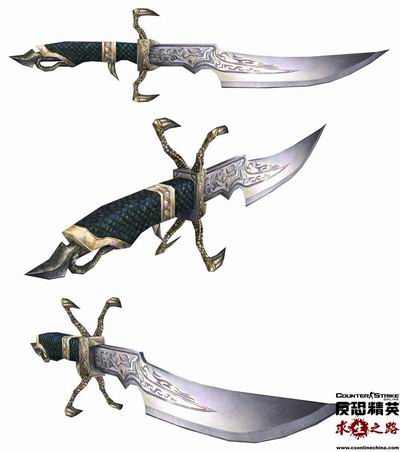 龙吻:传说中使用神龙的利爪精工细致而成的匕首,刀锋之间蕴藏着神龙的灵气,与AK47·赤龙和M4A1·青龙配合使用会产生令武器装弹速度加快的神奇效果。