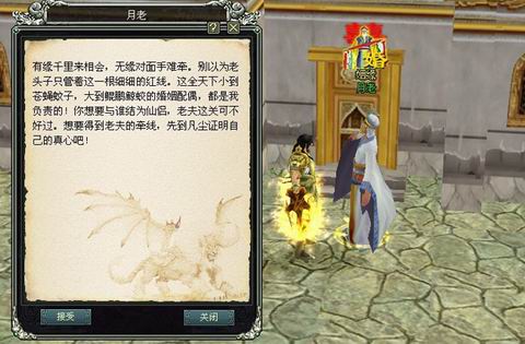 结婚当然是有条件的,《仙途》里,只要等级都达到了30级的男女玩家,才符合男大当婚女大当嫁的标准,且男女都是未婚身份,你可别想着一夫多妻或者红杏出墙,到处惹是非。而且,男方还要有求婚的资格,就像现实社会中,最起码彩礼要有那么一点点吧!游戏中对男方的彩礼要求:必须拥有“红绳”,想要获得红绳也很简单,中意的男女双双都要经受月老的小小考验,完成任务就会拥有。