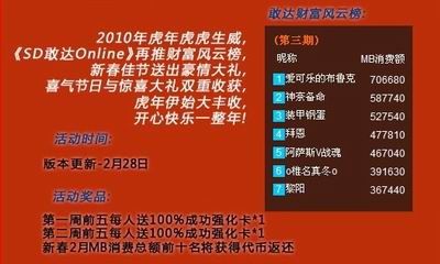 SD敢达OL虎年2月“财富风云榜”尘埃落定