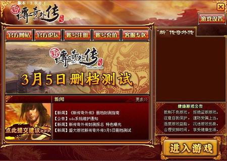- (2010-03-05) 《“新”传奇外传》今日15点开启删档测试