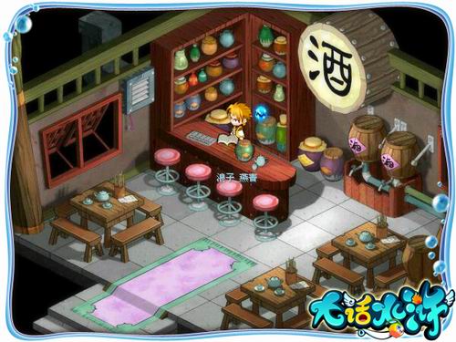 “小二,给我来坛上等女儿红!”嘻嘻,怎么样,这个酒吧格调还不错吧。