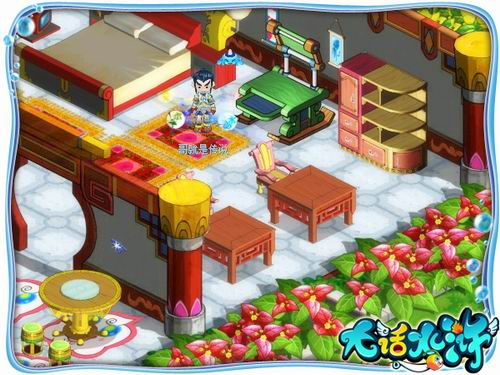 前面那个房子是系统自带的,这个房子可是你在游戏里能自己建造的哟,那些椅子、桌子、地毯都是你能自己选择的,怎么样,想来拥有一个属于自己的温馨小窝了吗?