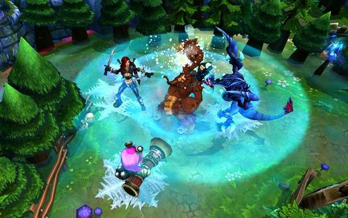 DOTA里有各色的野怪,很多英雄会通过“拉野“和打野获得经验和金钱,BOSS级野怪-Roshans更是成为玩家争夺的焦点。在《英雄联盟》里也有丰富的野怪,并且给野怪赋予了消灭之后的Buff效果,有攻击附带减速的效果,有快速回蓝、减少技能CD的效果。而BOSS级野怪也增加到了2个,其中的大BOSS在消灭之后更是给全队增加全面增强能力的效果,在河道附近的2个野怪,更加刺激了游戏的节奏,丰富了游戏的策略。