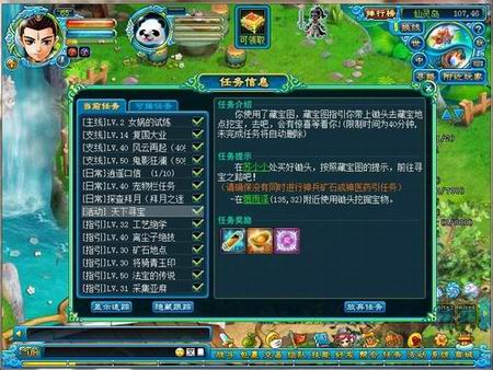 宝物挖宝任务除开给予现金奖励外,还有一定几率获得驱毒灵石、中级聚灵珠、中级日灵石、中级月灵石、仙灵散、一级灵珠等高级宝石。而封印挖宝遇见的妖怪更能获得不菲的奖励,还有一定几率获得三级灵珠和宠物技能书,包括秒四技能书等高级道具。
