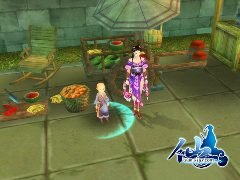 城中除了各种丰富的建筑之外还有各具性格的NPC角色,城墙边水果摊边站着一位化缘的小沙弥,精美的人物造型与表情贴图,让人很难想象这只是游戏中一个普通的NPC。
