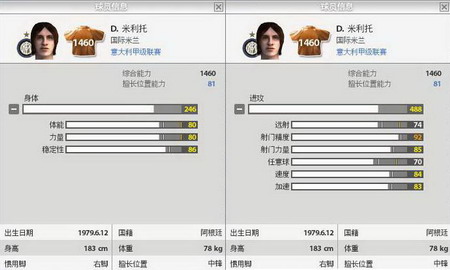 为国米打进制胜一球的又是近期状态火爆的阿根廷射手米利托,不管是在意甲赛场还是欧冠赛场,米利托不断的用自己一粒粒进球诠释着自己在《FIFA online 2》中92的射门精度,阿根廷射手的灵动在《FIFA online 2》84速度和83加速两项数值上也有体现,身体能力方便米利托80体能80力量和86稳定性足以保证长期稳定发挥,比赛中第65分钟的一脚低射为国米打开胜利之门。