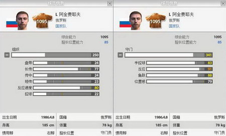 中央陆军能最后守得只丢1球,门将阿金费耶夫发挥了重要作用,反应80,守门技术83,反应91,鱼跃88,阿金费耶夫早已是欧洲众多大牌球队追逐的对象,但是86年出生的阿金却执着的想要在俄罗斯继续锻炼自己。本场比赛赛后统计,阿金费耶夫共做出了10次以上的有效扑救,并且封堵了4次国米势在必进的射门,只丢1球的中央陆军回到主场也并非没有机会创造出“奇迹”。
