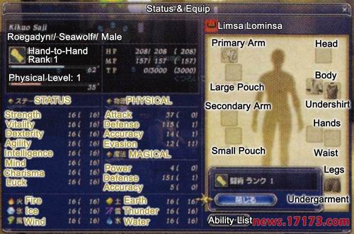 关注《最终幻想14》的玩家应该知道,在《最终幻想14》中是没有我们在网络游戏中所熟悉的等级系统的,而是分为了武器等级和物理等级两方面。两者都是通过战斗积累获得的,武器等级取决于玩家使用武器的频繁程度,越高的武器等级能够装备和使用更高级的武器(暂时还不确定是否存在限制,譬如每个角色只能学几个武器技能,或是某项武器等级过高会降低另外一项武器等级,否则练一个全能武器专家一定很过瘾);物理等级则是取决于你所获得的物理点数,玩家可以将获得的物理点数自由分配在八种基础属性、三个基础状态和六种抗性上,属性越高想要继续提升消耗的物理点数也越多,是专注于几项还是全方位发展就看玩家自己的选择了。