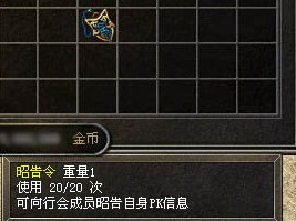 昭告令使用方法:玩家只要使用昭告令,你所在行会所有成员的聊天框都会显示:****在*****地图*****坐标附近PK。(在安全地图区域不能使用昭告令)