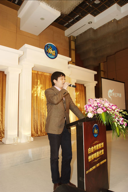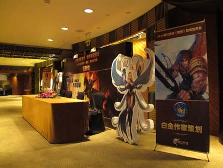 4月22日深红网络在上海隆重召开“白金作家策划,世博明星代言”新闻发布会,《猎国》小说作者兼游戏策划跳舞和代言人张璇都盛装出席,现场闪光灯此起彼伏。