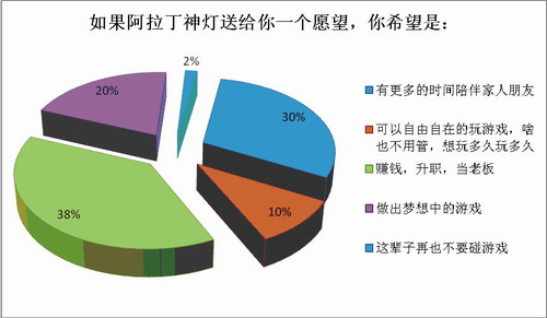 —— 高达38%的游戏人期待着赚钱、升职、当老板。对自我的未来管理游戏人们表现出了强烈的现实心、理想心以及企图心。