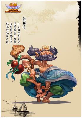 铁拐李作为八仙之首,却一向以乞丐的形象示人。在造型上来说,虽然抢眼,但却是八仙之中最差的一个。蓬头卷须、黑脸巨眼,并且还跛了一只右脚。跟几千年以后的同行“犀利哥”比起来差远了。不过,千万不要以为这是铁拐李本来形象差。以前的铁拐李也是一个不输“犀利哥”的超级帅哥。只是由于元神出窍,去天上赴了太上老君的一个什么鸟会,结果徒弟开小差,把尸体给弄没了。铁拐李回来后没地方托身,眼看着要魂飞魄散了。却在树林里发现一个饿死的人,只能急急的钻了进去。成了这副样子。也成就了八仙中最大的一个杯具。