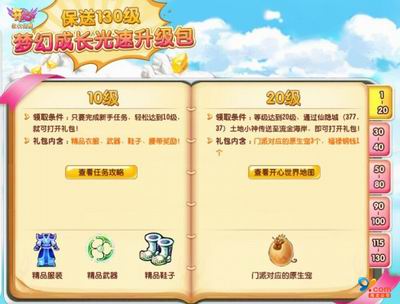 夺宝攻略:只要注册91账号,创建新人物,即有梦幻成长光速升级包直接送入你的背包。升级包价值1688元,为新人提供面面俱到的新手礼,最多可保送130级。从10级起,每达到指定等级,即可从礼包中领取原生宠蛋宠、精品装备、双倍经验药水等不同的生活品。此外,升级还送特权,完成指定任务独享额外奖励,在灵石商店享受特别折扣。比如,130级成功飞升,送仙品装备。若原生宠达到40星,再送1380点灵石。