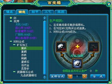 30级以上的玩家均可根据自己爱好修炼生活技能,技能分为锻造、制甲、工艺三方面,可以打造出武器、防具、饰品等不同的道具。通过在南玉城NPC王虎“(273,111)”处学习锻造技能以及挖掘技能;在NPC刘娥“(348,93)”处学习制甲和工艺技能。玩家可根据自己的喜好和需求有选择性提升自己的打造技能,每打造一件对应级别装备即可提升相应熟练度,玩家累积足够熟练度即可升级,提升自己的打造技能。