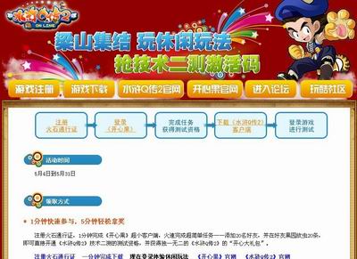 17173等多家权威游戏媒体已经开放《水浒Q传2》专区,并同步上线发技术二测的激活码活动。通过各大媒体派发的激活码激活的帐号,可得到“第一礼包”,数量有限,快快行动!