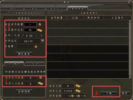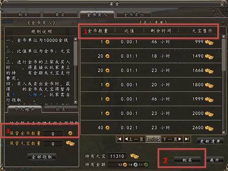 4、买入或卖出金币时,获得的金币或元宝将暂存至个人账户,玩家需自行领取。