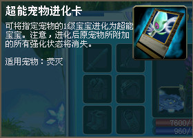 从以上数据来看,荧灭从“宝宝”形态进化到“超能形态”后各项潜能均有大幅提升,充分体现了物种进化后“双人跳四人舞”的巨大转变。所谓超能进化论,便是战宠由弱到强的必然转变,这一创新系统极大的丰富了《穿越OL》宠物系统的趣味性。
