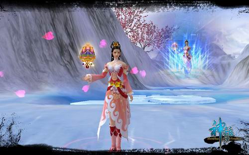 **是千年雪莲幻化而成,形如雪莲绽放,音似天籁之声,功力如失传已久的天魔琴。琴弦动,琴声扬,除敌于无形之中。
