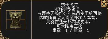 虎符是古代皇帝调兵遣将用的兵符,在《刀剑·英雄》最新资料片“烽火楚天”当中,参与全新攻城战的各路侠客,也可以利用全新上线的专有道具,展开一场更加刺激的攻城和守城战!