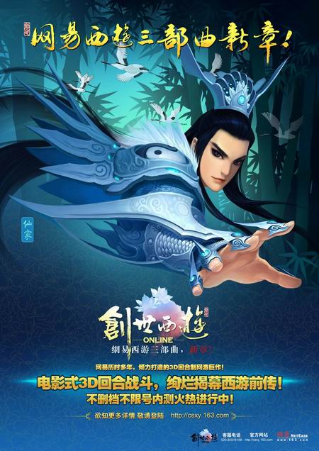 为了让玩家更好的了解游戏内涵,《创世西游》首款海报以《西游记》至强神兵——金箍棒为主角。这撼天动地的神兵法宝,揭开了《创世西游》再造经典的序幕。现在,第二版海报强势推出,同样以简洁有力的“网易西游三部曲新章”作为主宣传语,贴切传达了游戏传承品牌经典的精神。而“电影式3D回合战斗,绚烂揭幕西游前传”则完美彰显了3D回合战斗特色与史诗级的核心世界观。不同的是,此次以飘逸儒雅的仙家男与兰心蕙质的文士女为主角,连同另外14位身负不同使命的流派人物,带领玩家一同踏上全新西游路,进入赤明世界开创新世!