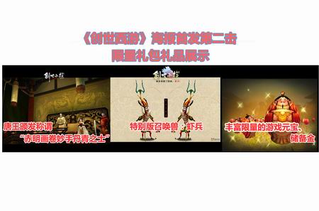 为祝贺第二版海报全球首发启动仪式以及回馈测试玩家高涨的热情,官方携手五大知名游戏媒体,联合推出“《创世西游》海报全球首发第二击启动仪式专题活动”。从现在起,五大媒体将会推出各种祝贺活动,只要亲身参与,将有机会获得“《创世西游》海报首发限量礼包”。礼包内除了有丰富的元宝与储备金外,还能获得特别版珍稀召唤兽一只!同时还可获得唐王颁发的“赤明画卷妙手丹青之士”称谓,快快行动吧!