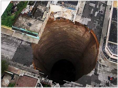 2010年5月31日,受飓风“阿加莎”影响,危地马拉城出现一个深达60米的塌陷地洞,有目击者称一幢3层建筑坠入洞中,至少造成1人死亡。据悉,地洞是由于当地脆弱的地下管道系统无法将雨水排走引起的。2007年,这一地区曾出现类似塌陷洞,当时有3人丧生。