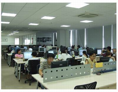 穿过工作大厅,我们看到了美术部、策划部、程序部的员工们都在忙碌地工作着,想必是游戏正在测试期,工作量很大。在市场部,我们看到的是另一幅景象,时而响起的电话铃声,客服忙碌的问候,市场部与开发部一样,几乎都是清一色的年轻人,他们热情洋溢,充满激情。我们注意到一个戴着耳机听着音乐的小伙子,正在论坛上跟人聊天,运指如飞。据他的同事介绍,他本来是昨天的晚班,因为有个玩家点名要他解决昨天晚上的一个问题,于是他现在还没能下班,囧。
