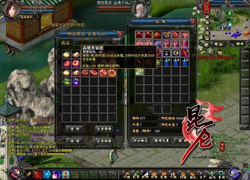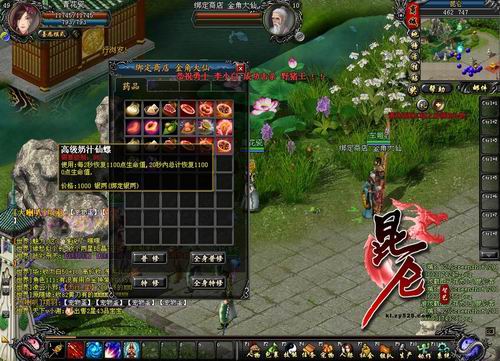 药品和食物可在昆仑主城和桃源村的食品商人——“集草仙”处可以购买,“集草仙”是按银两付费的,若银两不足,也可使用绑定银两,打开地图寻找“金角大仙”NPC就到达绑定商店。这样一来,玩家可以自由运用银两和绑定银两这两笔财富。