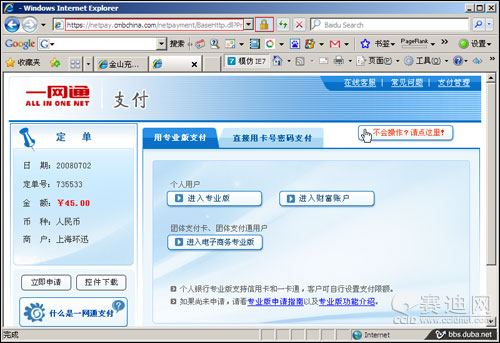 处方:记住,天上不会掉馅饼,大大小小都不会。只认准官方充值页面,并且厂商为了安全,所有充值页面都会是https加密的,浏览器的状态栏会有一把小锁。尽量使用网络银行的专业版,有证书的保护,会安全很多。