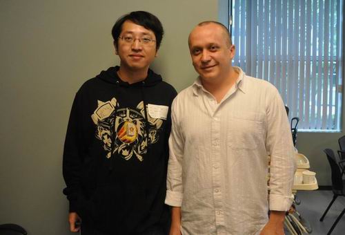 WOW首席系统设计师鬼蟹(右)与173记者合影,鬼蟹曾是全效工作室的一员