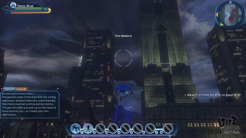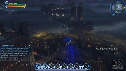 击倒守卫以后,超人会继续深入破坏船只,而玩家则通过传送器传送到正义联盟位于哥谭市的安全物