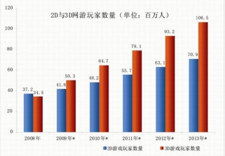 从2004年开始《魔兽世界》在中国网游市场上划了一个圈之后,国内网游市场便开始刮起了3D的春潮。可惜的是直到2011年,依旧没有3D网游能真成称为成功之作;这其中包括国内研发产品《剑三》、《天下贰》等一线产品和代理《永恒之塔》等国外大作。与此同时,反倒是2D类网游发展趋势依然乐观。巨人网络的《征途》;完美时空的《梦幻诛仙》;网易的《梦幻西游》等都举得了巨大的成功,并严重冲击了3D网游刚刚蒸蒸日上的市场份额。