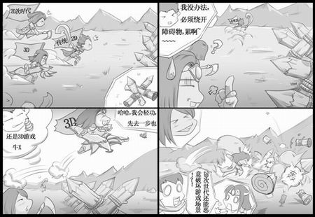 严峻的事实让2D网游深陷围困。科技的快速发展,电脑配置和网络带宽的更新换代,令网吧电脑和家用电脑几乎都能满足3D网游的需求,加之3D类网游带给用户的第一眼震撼力2D网游望其后背不及,从而导致玩家不约而同的被3D网游所吸引。