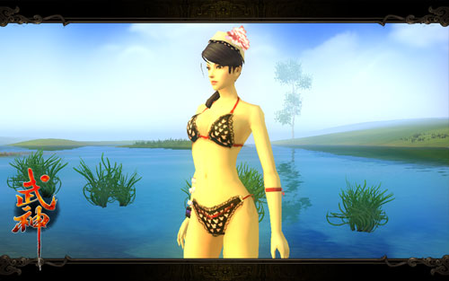 沙滩、骄阳、比基尼一样都不能少!倾城美女、火辣身材,再配上《武神》全新性感比基尼时装,相信在游戏中一定会引起不小的骚动。谁说游戏只是打怪升级?身着如此清凉时装,你不想来次海边邂逅?不想邀约好友来场沙滩派对?只要你想,《武神》绝对满足你。透露个小秘密,借此机会,你还可偷窥到比基尼美女腰间的个性纹身哦!