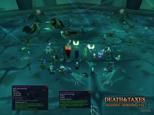 小知识:你知道60级时期的NAXX总共可以同时加多少种BUFF吗?答案是30种以上,我们熟悉而且常用的除了职业BUFF以及各种药水和合剂外,还包括龙头、咆哮、哈卡心三大BUFF,磨刀石/武器油、美味奇美拉肉片、赞扎之魂等等,而我们不熟悉的还包括诅咒之地饮料BUFF,通灵、深渊、厄运等副本BUFF,费伍德净化、冬泉谷魂精等任务BUFF以及暗月塔罗牌、东瘟疫塔楼BUFF等等,事实上没有一个团队能加满这一套然后再挑战的。